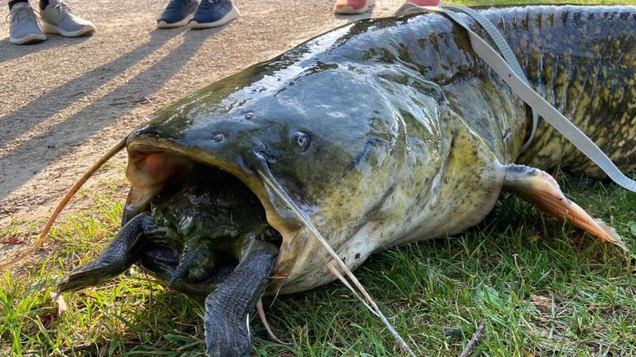Mit der schildkröte hat sich der wels wohl etwas übernommen, schilderte marc stemmwedel vom sportangelklub göttingen e.v. Erst als sie sich dem tier näherten, erkannten sie was eigentlich vorgefallen war. Die schildkröte hatte sich in den kiemen des riesigen fischs verbissen und so funktionierten dessen kiemen nicht. Wels erstickt an einer schildkröte. Paddler und angler haben am göttinger kiessee in niedersachsen einen knapp 1,50 meter großen wels an land gezogen, der sich an einer schildkröte verschluckt hat. Aus dem maul hingen teile der schildkröte, die der wels als beute. Aber nicht die größe war das besondere, sondern der letzte fang des raubfisches. ▶ der wels zählt zu den größten süßwasserfischen europas. Als angler den riesigen fisch aus dem wasser ziehen, steckt das gepanzerte tier in seinem weit aufgerissenen maul. Der fisch hatte sich an seiner beute verschluckt. Angler haben am göttinger kiessee einen knapp 1,50 großen wels an land gezogen, der sich an einer schildkröte verschluckt hat. Der fisch hatte sich an seiner beute verschluckt. Das gepanzerte tier ragte zum teil noch aus dem maul des raubfisches, der zunächst zwar noch lebte.